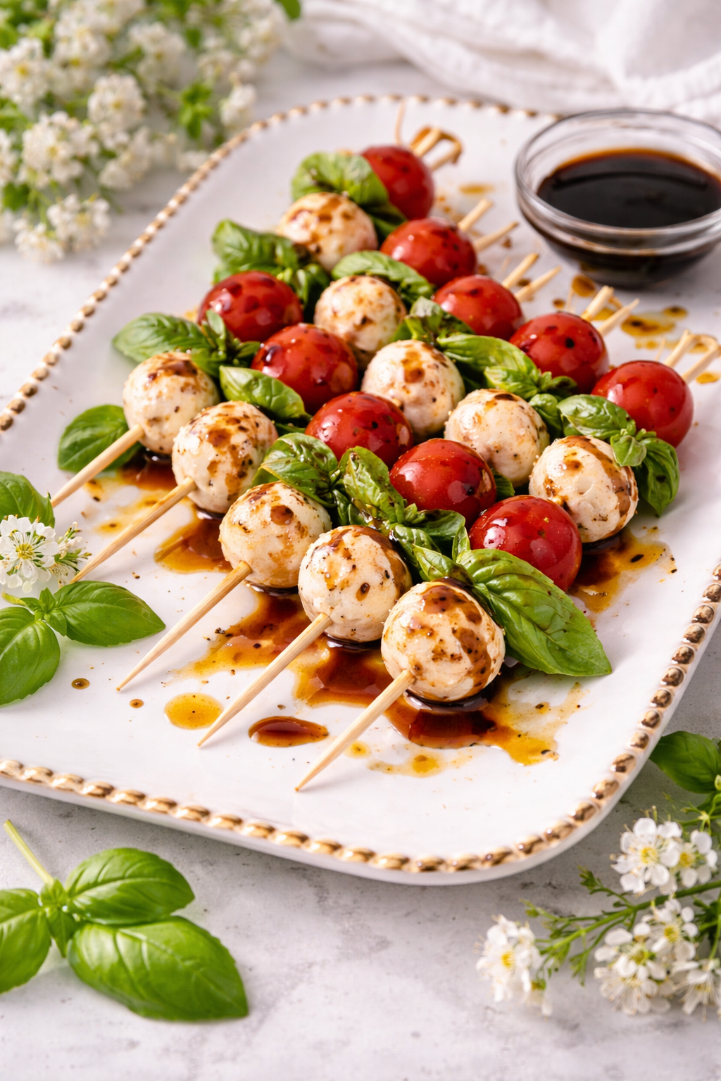 One of the biggest advantages of these bridal shower finger foods is how easy they are to assemble ahead of time. You can prepare them hours in advance, store them in the refrigerator, and drizzle with balsamic glaze just before serving.