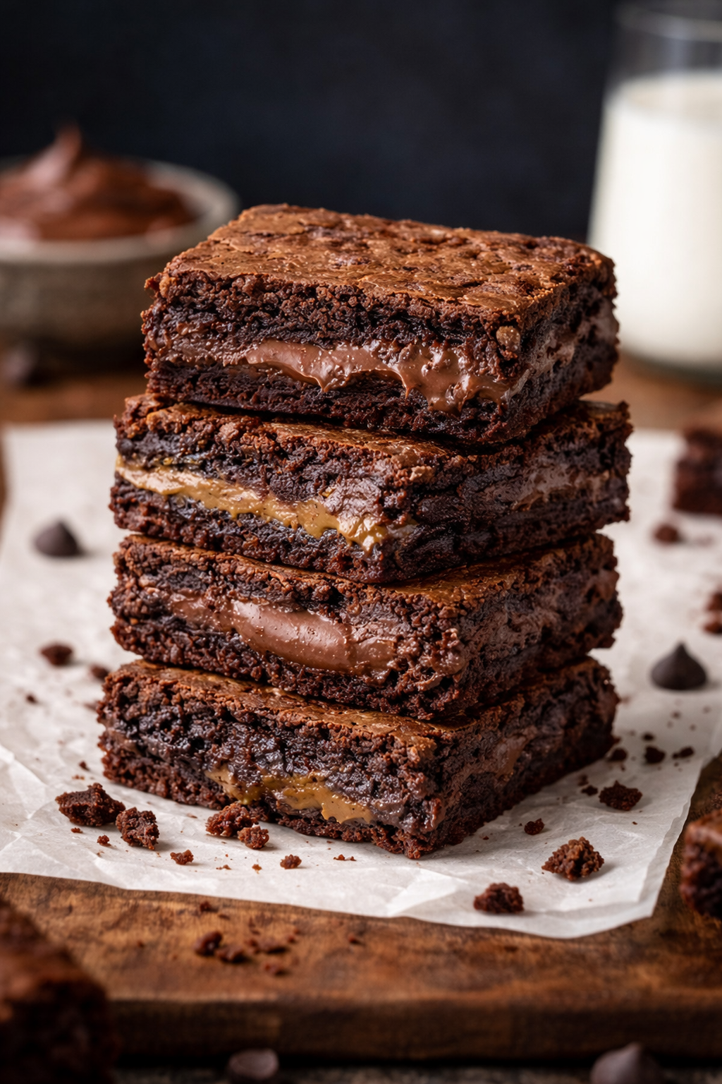 Making Nutella stuffed brownies is simple and beginner-friendly. The brownie batter is mixed in one bowl, layered with Nutella, and baked until just set for the perfect fudgy texture.